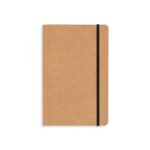 Caderno kraft, frente e verso liso com fita elástica para fechar. Contém aproximadamente 80 folhas marfim sem pauta.