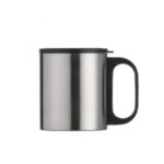 Caneca de inox 180ml com cabo e tampa em plástico resistente (não é térmica).