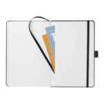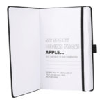 Mix Mela Bound Journal features a uniquely crafted hard cover with 39% of apple components. Color-matching elastic closure, pen loop and ribbon page marker. Includes 80 sheets of FSC® Mix white lined recycled paper and back document pocket. Through a partnership with 1% For The Planet, one percent of sales of all EcoSmart® products will be donated to environmental nonprofits.