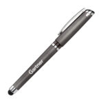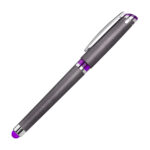 The Joyce Gel Pen with stylus is truly a joy to write with! This sleek dark chrome capped pen with pen clip comes in 4 different accent colors. Product Size: 5.75″ W x 0.5″ H . Ink refill: Gel Ink Refill (Black)