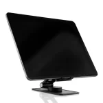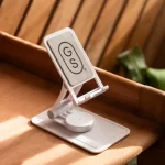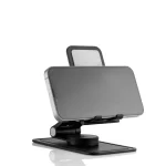Foldable stand featuring a 120° adjustment, 180° height adjustments and 360° rotation